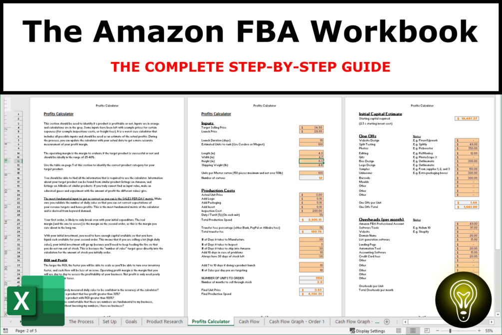 The Amazon FBA Workbook by Profitable Inventors is a guide to product development, from idea to the Amazon FBA marketplace. It’s an excel spreadsheet that gives you the framework, structure and guidance you need to profitably get your ideas into the world.